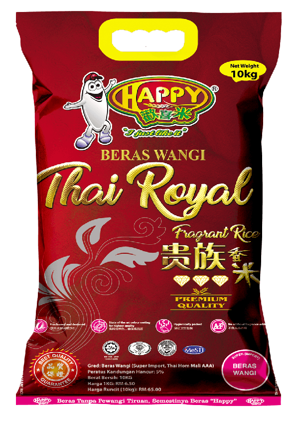 ‘Happy’Thai Royal Premium Quality Fragrant Rice is superb quality imported fragrant rice from Thailand.