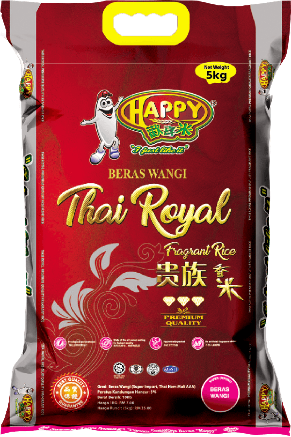 - ‘Happy’ Thai Royal Premium Quality Fragrant Rice is superb quality imported fragrant rice from Thailand.